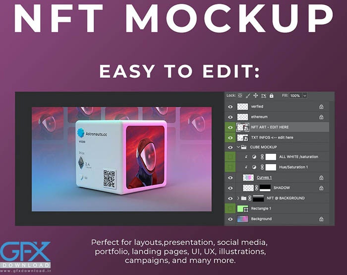 دانلود موکاپ لایه باز مکعب NFT با نام NFT Cube