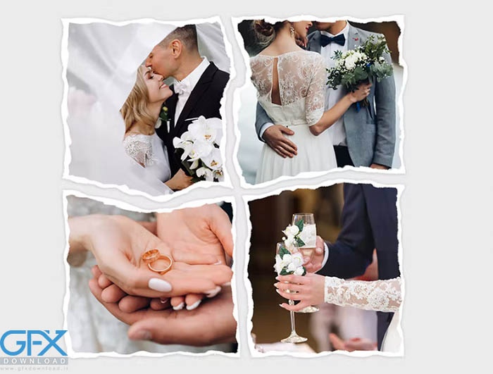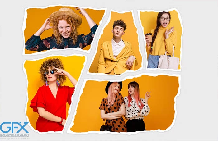 کلاژ عکس با افکت پاره شده. میتوانید از قالب آماده در پروژه، مجموعه، وبسایت، مودبرد، رسانههای اجتماعی (فیسبوک، اینستاگرام، توییتر و غیره)، هدیه، کتاب، مجله، چاپ و موارد دیگر استفاده کنید.