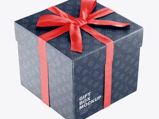 دانلود موکاپ لایه باز جعبه هدیه و کادو مربعی براق