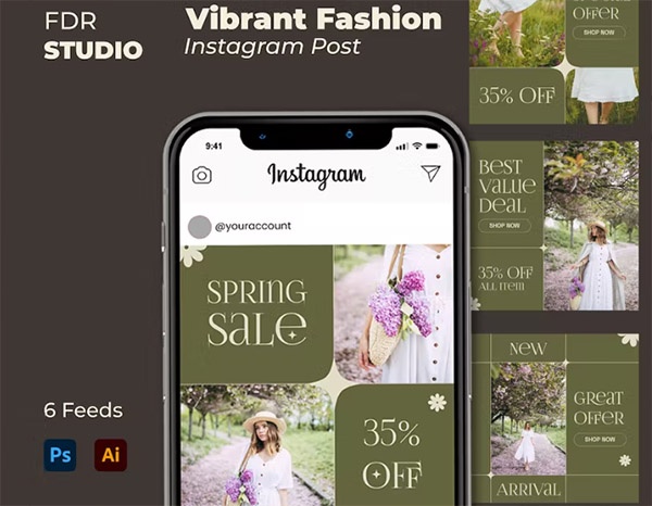 دانلود قالب لایه باز پست اینستاگرام کالکشن مد بهاری
