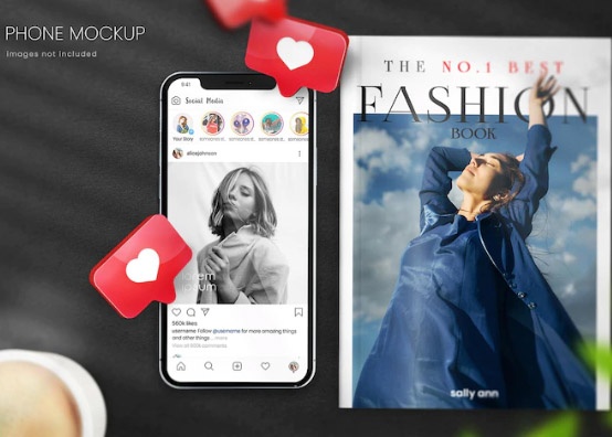 موکاپ لایه باز گوشی موبایل با صفحه اینستاگرام