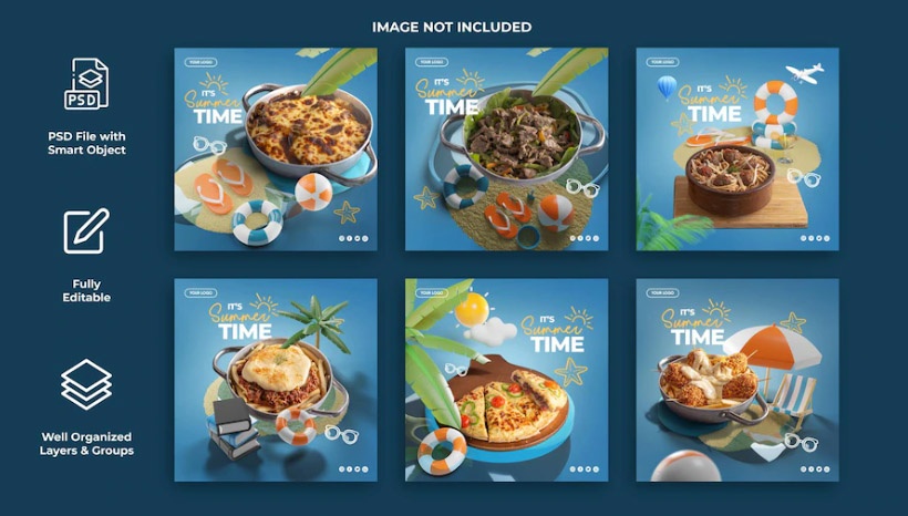 دانلود قالب پست اینستاگرام لایه باز تبلیغاتی غذای رستوران تابستانی