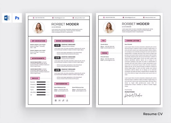 دانلود طرح لایه باز psd رزومه کاری مینیمالیستی