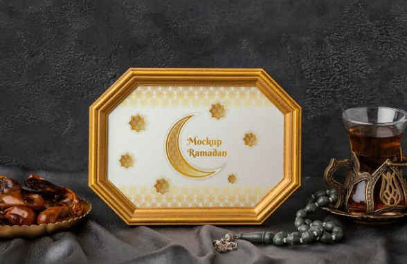 این فایل موکاپ قاب عکس طلایی با بکگراند خرما، تسبیح و چایی می باشد. با دانلود موکاپ قاب طلایی با موضوع ماه رمضان می توانید از آنها برای طراحی بنر و پوستر ماه مبارک رمضان استفاده کنید. فرمت این فایل لایه باز psd است که قابل ویرایش و سفارشی سازی در نرم افزار فتوشاپ می باشد.