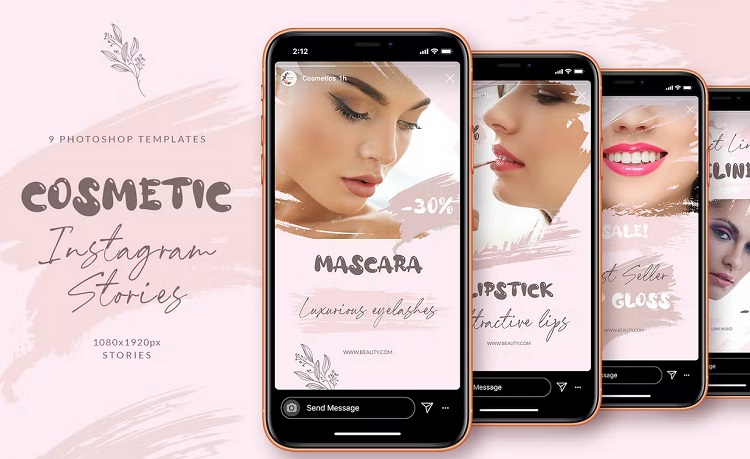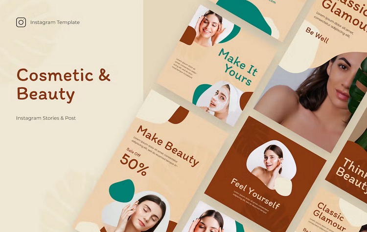 • Beauty Instagram Post • Cosmetic Instagram Post • Cosmetic Instagram Stories • Cosmetics beauty products social media Banner