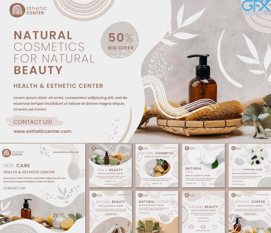مجموعه بنر تبلیغاتی لوازم آرایشی و محصولات بهداشتی اینستاگرام توسط جی اف ایکس دانلود برای شما جمع آوری شده است.شما توسط این مجموعه می توانید در کمترین زمان ممکن بنرهای تبلیغاتی حرفه ای با موضوعات محصولات بهداشتی ، آرایشی ، زیبایی ، کاشت ناخن و....را طراحی نمایید.جی اف ایکس دانلود سالم بودن فایل ها را به شما تضمین میدهد.امکان دریافت این مجموعه به صورت خرید تک فایل یا با تهیه اشتراک میسر می باشد.در صورتی که نیاز به بنر خاصی دارید و در این مجموعه موجود نیست در قسمت نظرات سایت زیر همین مطلب برای ما درخواست خودتان را ارسال نمایید.اگر به دنبال هشتگ های #بنر تبلیغاتی محصولات بهداشتی#بنر تبلیغاتی لوازم آرایشی #بنر تبلیغاتی سالن زیبایی #بنر تبلیغاتی آرایشگاه زنانه جدید و...هستید این مطلب مناسب شما می باشد.