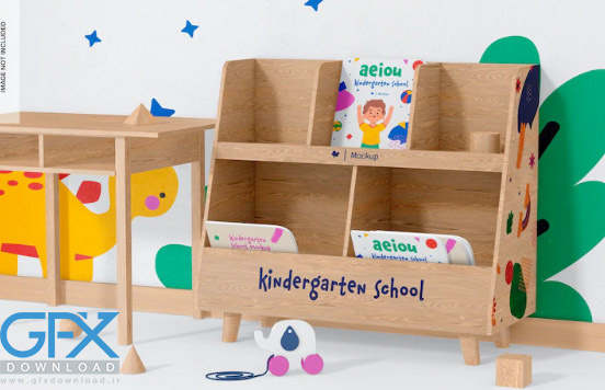 این طرح لایه باز شامل موکاپ قفسه کتاب مهد کودک با میز و موکاپ لایه باز با مفهوم جامعه کودکان می باشد که به صورت رایگان از سایت جی اف ایکس دانلود قابل دریافت است. دانلود رایگان psd لایه باز مهد کودک با فرمت psd ارائه شده است که قابل ویرایش و سفارشی سازی در نرم افزار فتوشاپ می باشد.