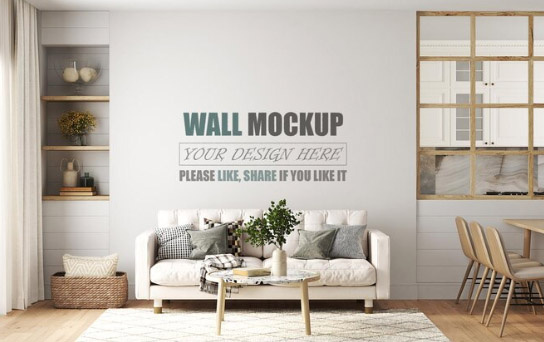 دانلود موکاپ لایه باز دیوار اتاق نشیمن و دکوراسیون داخلی