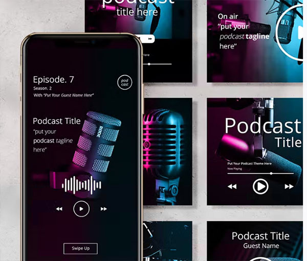 این مجموعه مناسب برای طراحی برای نیازهای تبلیغاتی برند شما در شبکه های اجتماعی اینستاگرام، به خصوص در استوری های اینستاگرام است. قالب پست و استوری اینستاگرام پادکست Duotone که می تواند برند یا کسب و کار شما را افزایش دهد، این قالب اینستاگرام پادکست دارای استوریهای اینستاگرام است که به سبک مدرن و زیبایی طراحی شدهاند، که میتواند به بهبود بازاریابی شبکههای اجتماعی شما با قالبهای آماده ما کمک کند. میتوانید آن را با تهیه اشتراک ویژه از سایت gfx تهیه نمایید.