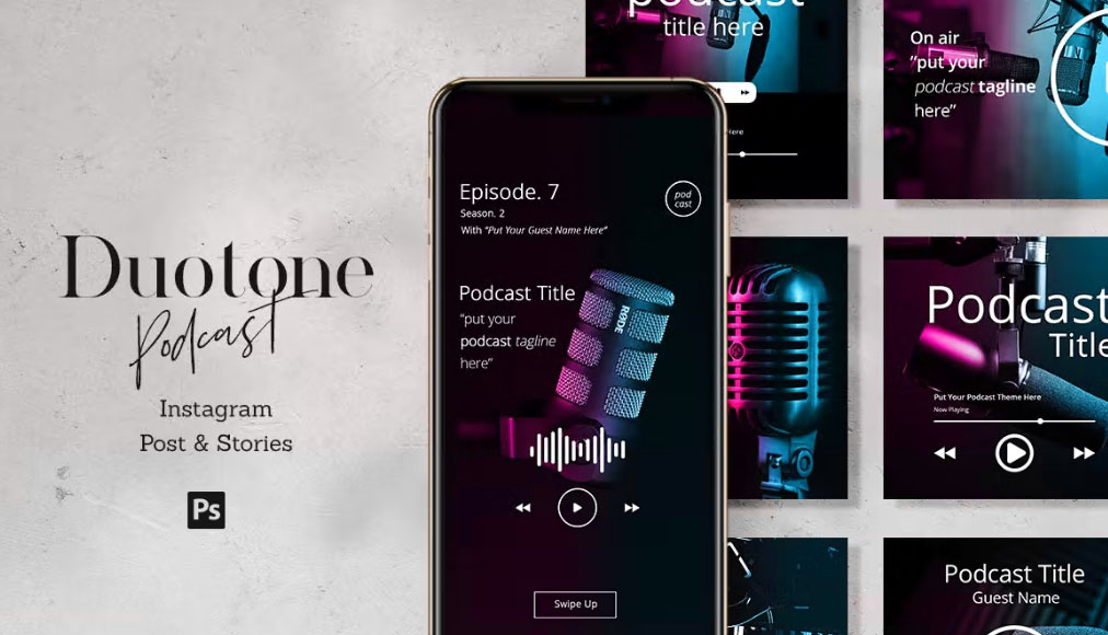 دانلود قالب آماده لایه باز پست و استوری اینستاگرام پادکست Duotone