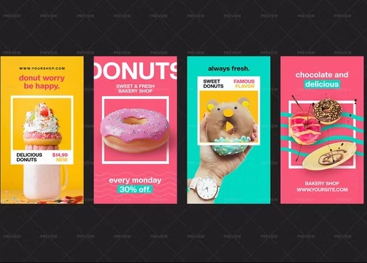 دانلود 5 قالب لایه باز استوری اینستاگرام دونات و شیرینی