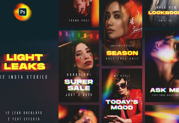 قالب استوری های اینستاگرام با اورلای نورانی Light Leak Stories