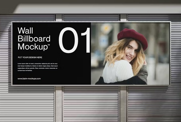 دانلود موکاپ لایه باز بیلبورد روی دیوار Billboard Mockup