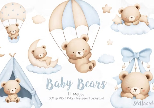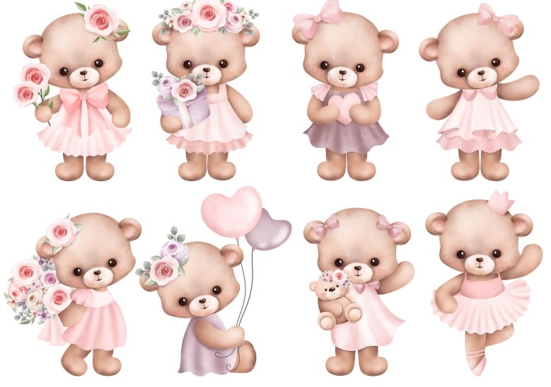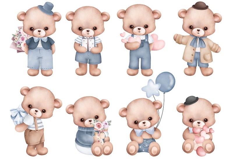 دانلود مجموعه طرح لایه باز خرس تدی آب رنگی کارتونی