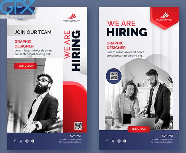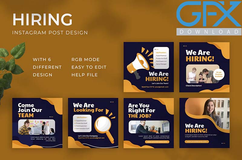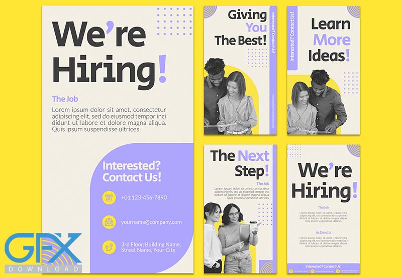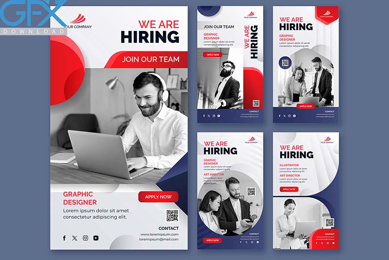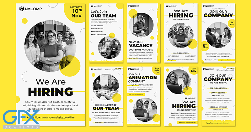مجموعه قالب لایه باز پست و استوری استخدام برای اینستاگرام