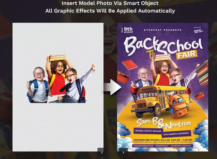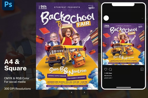 ✅ نام طرح لایه باز: Back To School Flyer✅ شامل 3 فایل PSD (Photoshop CC 2018 یا جدیدتر)