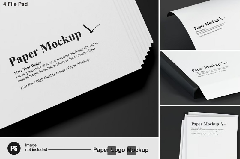 دانلود 4 موکاپ لوگو روی کاغذ لایه باز با فرمت PSD