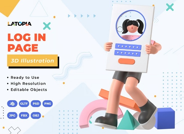 ✅ نام فایل لایه باز1: Log in to account with username and password✅ نام فایل لایه باز2: Login Page 3D