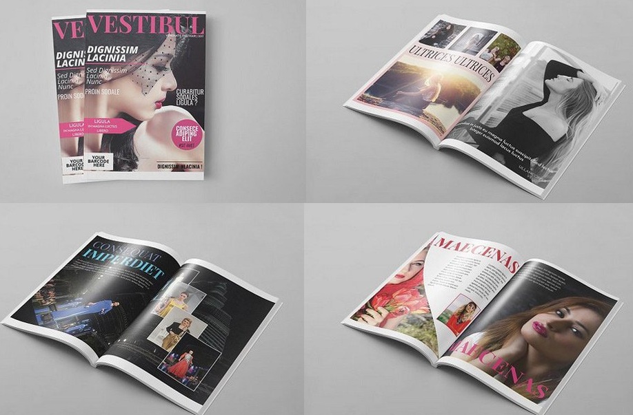 Magazine TemplateV4 نام این طرح لایه باز روزنامه می باشد که با تم فشن مناسب طراحی بروشور سالن های زیبایی نمونه کار فشن و مد و سایر موضوعات دیگر می باشد• شمل 20 فایل لایه باز با فرمت PSD