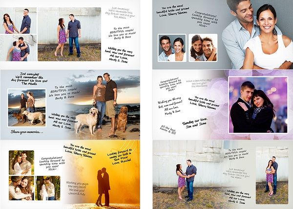 یک کارت یا کتاب پذیرایی یا در مقیاس بزرگتر چاپ شده برای مهمان ها به صورت سفارشی ایجاد کنید برای ارسال پیام آرزوی خوشبختی به زوج ها و ... . این مجموعه شامل ده صفحه پشت و رو (20قالب آماده)، به علاوه طراحی پشت و رو جلد است. به راحتی قایل ویرایش است و می توانید در صورت نیاز صفحه و چیدمان جدید را اضافه کنید.شامل فونت ها و راهنمای چاپ برای تنظیم و پرینت کردن از هرجایی می باشد. نمونه آن در عکس زیر قابل مشاهده است.