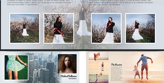 آلبوم های عکس سفارشی و یا نسخه هایی در مقیاس بزرگ با مجموعه مدرن کلاسیک 2 ساخته شده است. چهار مجموعه قالب عکس شامل : ۸ / ۸ اینچی با چیدمان Landscape ، 8x10 اینچی طرح پرتره ، 12x12 اینچی طرح مربعی با لایههای پسزمینه پریست سفید و چیدمان مربع 12x12 اینچی با لایههای پسزمینه پریست سیاه می باشد. هر مجموعه از قالب ها شامل طرح بندیهای دو صفحهای ( 26 قالب صفحهای ) , به علاوه طرح کاورهای پشت و رو میباشد. به راحتی سفارشی سازی کنید و در صورت لزوم صفحات اضافی و طرح بندی های جدید ایجاد کنید . راهنمای چاپ و فونت ها در خود برنامه فتوشاپ برای تنظیم و چاپ از هر چاپخانه ای موجود می باشد. نمونه چاپ عکس کتاب در زیر نشان داده شده است.