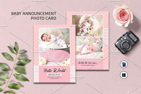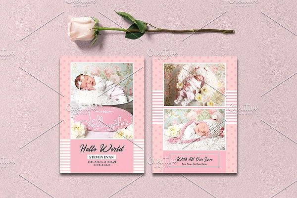 دانلود psd لایه باز کارت دعوت یا پوستر برای تولد نوزاد جدید Birth Announcement