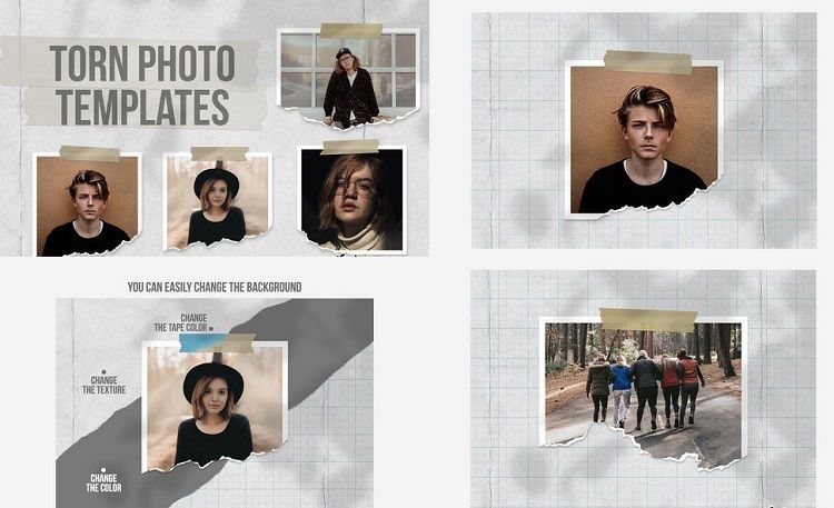 Torn Photo Templates نام این psd یا تمپلیت عکس فتوشاپ می باشد که می توانید به راحتی عکس های خود را در فایل psd لایه باز جایگذاری کنید و در اینستاگرام،وب،طراحی های عکس و سایر جاهای دیگر از آن ها استفاده نمایید.این مجموعه در 6 فایل لایه باز psd با کیفیت خوب عرضه شده و استفاده از آن ها بسیار ساده و آسان می باشد.برای دانلود psd لایه باز قاب عکس کاغذ پاره به ادامه مطلب مراجعه نمایید...پسورد فایل :