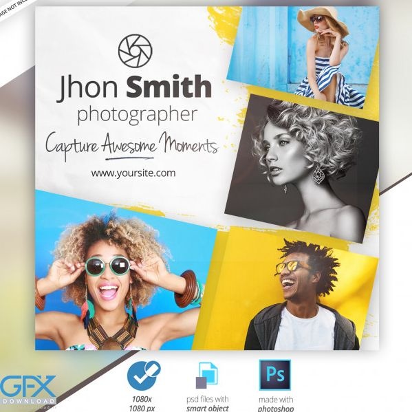 PSD بنر تبلیغاتی لایه باز عکاسی شبکه های اجتماعی