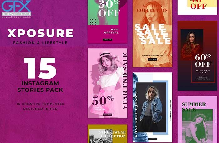 Instagram Stories شامل مجموعه 15 قالب اینستاگرام استوری می شود که بسیار حرفه ای،مدرن و زیبا طراحی شده و به راحتی می توانید آن ها را در فتوشاپ ویرایش نمایید و به عنوان استوری در شبکه مجازی اینستاگرام از آن ها استفاده نمایید.اگر به دنبال قالب استوری اینستاگرام لایه باز هستید این یکی از بهترین مجموعه قالب ها می باشد که در ادامه مطلب می توانید در جی اف ایکس دانلود آن ها را دریافت نمایید.