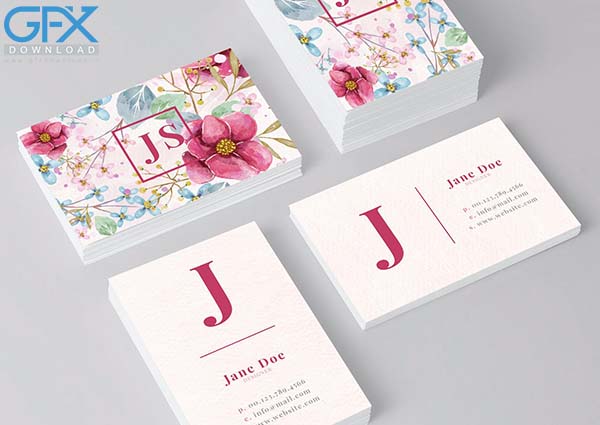 دانلود کارت ویزیت لایه باز طرح گل های آب رنگی با فرمت psd