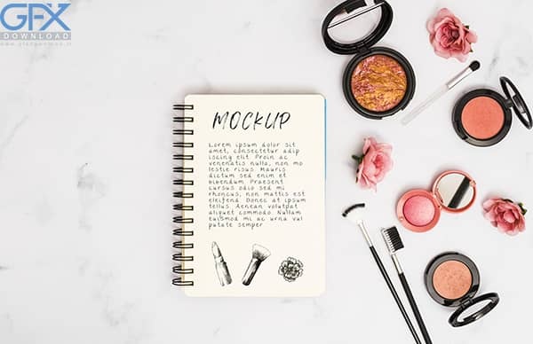 دانلود موکاپ لایه باز لوازم آرایشی و بهداشتی از نمای بالا