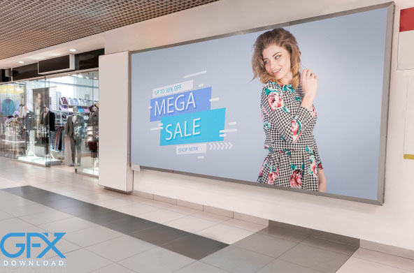 دانلود رایگان موکاپ لایه باز بیلبورد تبلیغاتی در مرکز خرید