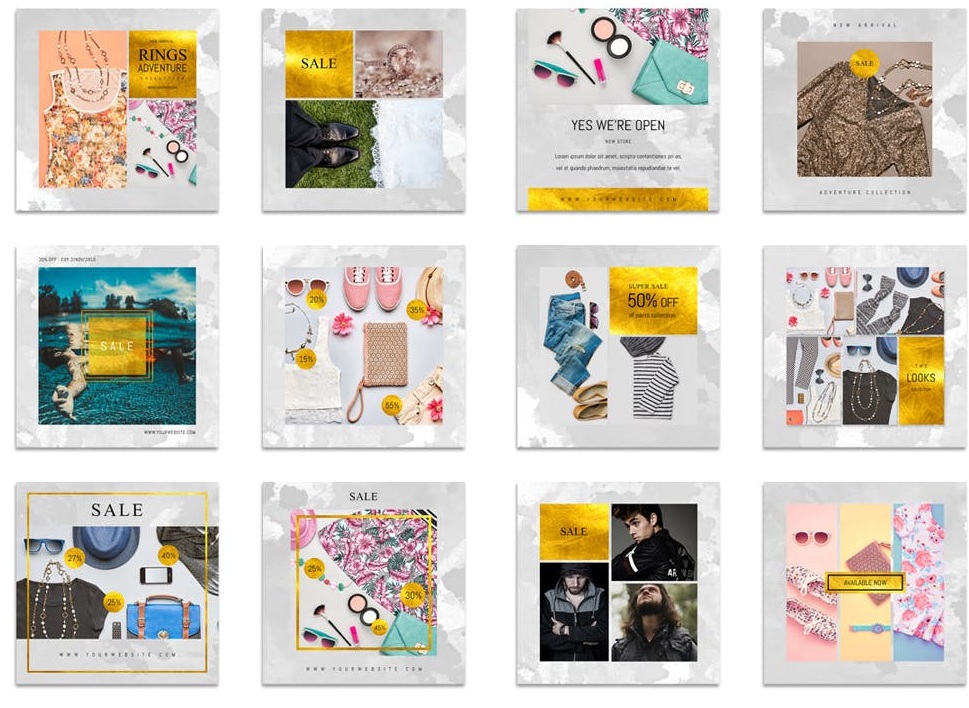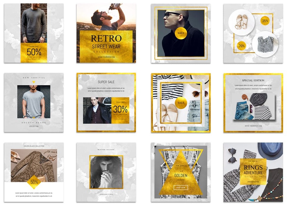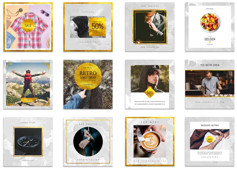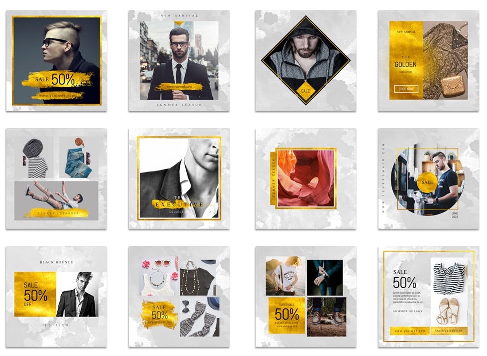این مجموعه شامل 50 قالب پست اینستاگرام لایه باز می باشد که به صورت فایل psd عرضه شده است و مناسب برندینگ،فروش و معرفی محصولات مختلف می باشد.توسط استفاده از این قالب های آماده می توانید در کمترین زمان ممکن پست های اینستاگرام حرفه ای طراحی نمایید و از طریق آن کسب درآمد کنید یا فروش پیج خودتان را چندین برابر نمایید.برای استفاده از قالب ها باید کار با فتوشاپ را بلد باشید و با لایه ها آشنایی داشته باشید.اگر کار کردن با فتوشاپ را بلد هستید می توانید در کمترین زمان ممکن عکس و متن خودتان را در قالب ها جایگذاری نمایید و نتیجه کار خودتان را با کیفیت مناسب ذخیره کنید.در ادامه مطلب می توانید نمونه قالب ها را تماشا نمایید و فایل اصلی قالب پست اینستاگرام برندینگ را از جی اف ایکس دانلود دریافت نمایید.
