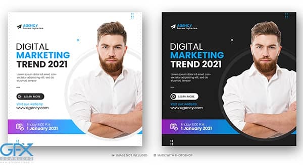 اگر شما هم قصد طراحی پست های اینستاگرامی جذاب و تاثیر گذار برای پیج اینستاگرام یا سایر شبکه های اجتماعی خود دارید، این قالب لایه باز پست اینستاگرام دیجیتال مارکتینگ را از دست ندهید. این فایل یک قالب آماده برای ساخت پست های اینستاگرامی جذاب با موضوع دیجیتال مارکتینگ، بازرایابی، آژانس بازاریابی برای رسانه های اجتماعی است. همچنین برای ساخت بنر های مربعی شکل می توانید از آن استفاده کنید. فرمت این فایل psd لایه باز است که به راحتی تمام موارد را می توانید ویرایش و سفارشی سازی کنید. فقط کافیه متن، تصویر و رنگ ها را تغییر بدید تا بنر مورد علاقه خود را ایجاد کنید.