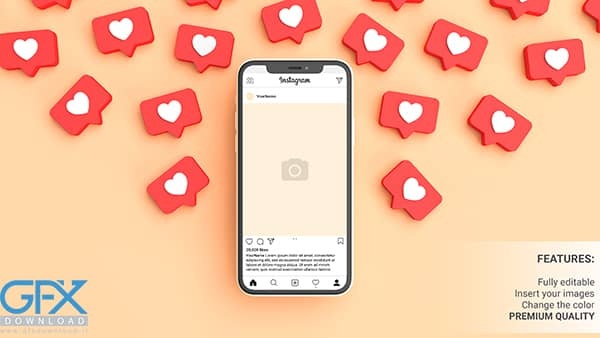 در این پست با دانلود موکاپ پست اینستاگرام با نوتیفیکیشن لایک با شما همراه هستیم. پست و استوری اینستاگرام یکی از مهترین روش های تبلیغاتی برای کسب و کار شما است. این قالب آماده و کاملا لایه باز است که مناسب جهت استفاده و ویرایش در نرمافزار فتوشاپ است. این طرح لایه باز در قالب فایل psd است که بر روی سایت برای دانلود قرار گرفته است. با اجرای این فایل در محیط فتوشاپ خیلی ساده و راحت میتوانید نسبت به ویرایش و سفارشیسازی آن اقدام کنید. این موکاپ با طراحی زیبا از قالب پست اینستاگرام می باشد که با نوتیفیکیشن های لایک احاطه شده است.