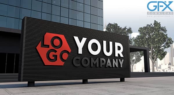 دانلود موکاپ لایه باز لوگو 3بعدی بر روی تابلو ایستاده ساختمان