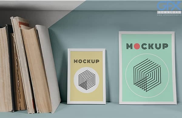 موکاپی کاربردی از دو قاب عکس که روی قفسه یا شلف قرار گفته است و کتاب های دیگر در کنار آن قرار گرفته اند. موکاپ قاب عکس بر روی شلف طرحی بسیار شیک از قالب آماده و کاملا لایه باز است که توسط آن میتوانید پیشنمایشهایی از طرح و تصاویر خود بر روی قاب و فریم و یا این قالبهای آماده ایجاد کنید. موکاپ در قالب فایل psd بر روی سایت بارگذاری شده که خیلی ساده و راحت میتوانید از آن در نرم افزار فتوشاپ استفاده کرده و یا نسبت به جایگذاری تصاویر خود بر روی آنها اقدام کنید. قالب از کیفیت بالایی برخوردار بوده و مناسب جهت ایجاد تصاویری با رزولوشن بالا میباشد.