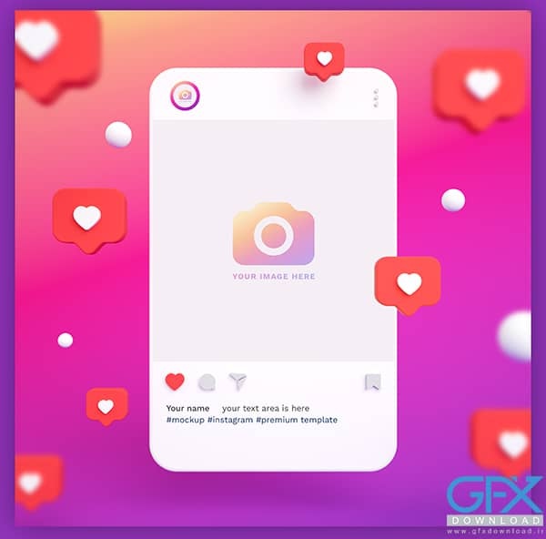 دانلود فایل لایه باز موکاپ قالب پست اینستاگرام با آیکون نوتیفیکیشن قلب