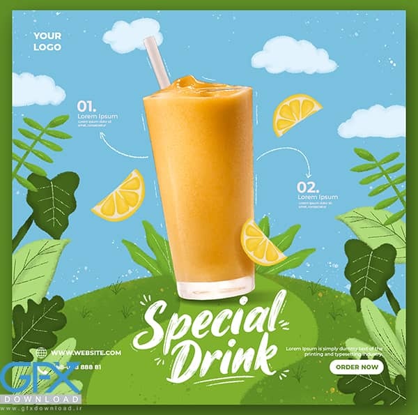 دانلود رایگان قالب پست اینستاگرام لایه باز تبلیغات آب پرتقال