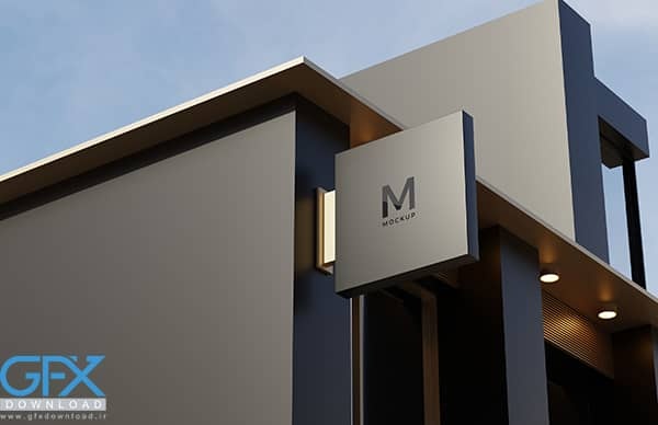 دانلود موکاپ لایه باز لوگو تابلو بر روی سر در شرکت و فروشگاه