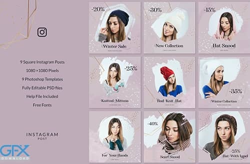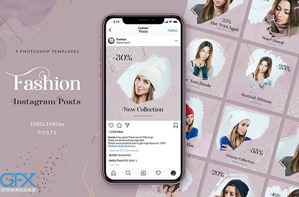 دانلود 9 قالب لایه باز پست اینستاگرام فروشگاه آنلاین فشن و مد