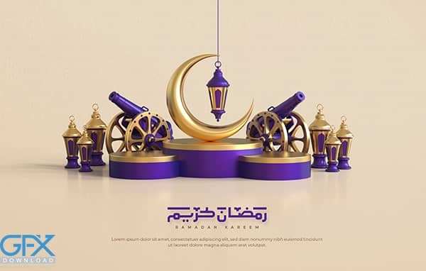 در این مطلب از سایت جی اف ایکس دانلود شاهد بک گراند مخصوص ماه مبارک رمضان به صورت لایه باز مناسب جهت استفاده و ویرایش در نرم افزار فتوشاپ می باشید. دانلود بک گراند لایه باز تبریک ماه رمضان با المان های سه بعدی با موضوع ماه رمضان در قالب فایل psd ارائه شده است که از آن ها می توانید در طرح های گرافیکی و تبلیغاتی خود استفاده کنید. دارای کیفیت عالی و رزولوشن بالا. می توان در طراحی انواع بنر و یا پوستر ویژه ایام ماه مبارک رمضان از این قالب آماده psd استفاده نمود.