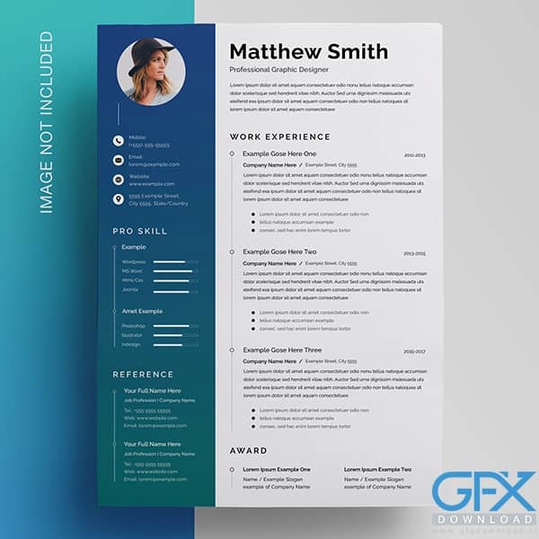 ویژگی های طرح لایه باز رزومه کاری از جی اف ایکس دانلود