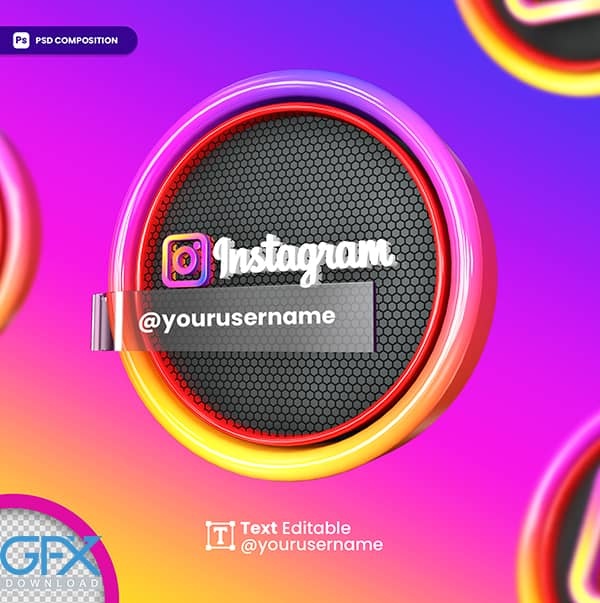 این طرح یک لوگوی سه بعدی از شبکه اجتماعی اینستاگرام با طراحی بسیار جذاب و تاثیر گذار را نمایش می دهد که می توانید آدرس پیج و آی دی اینستاگرام خود را در این قالب آماده به راحتی قرار دهید. این موکاپ لایه باز سه بعدی لوگو اینستاگرام مناسب برای تبلیغات و معرفی پیج های اینستاگرام است و می توانید به راحتی آن را ویرایش و سفارشی سازی کنید. فرمت این فایل psd لایه باز است. قابل ویرایش در نرم افزار فتوشاپ.