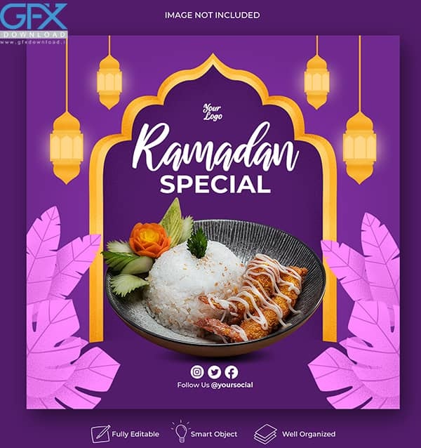 دانلود قالب لایه باز پست و بنر اینستاگرام برای ماه رمضان