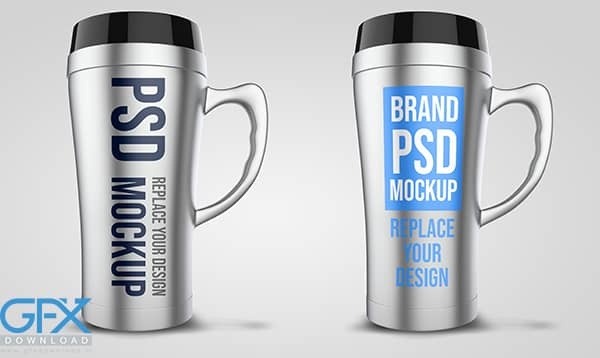 دانلود رایگان طرح موکاپ لایه باز 2 لیوان استیل درب دار بزرگ