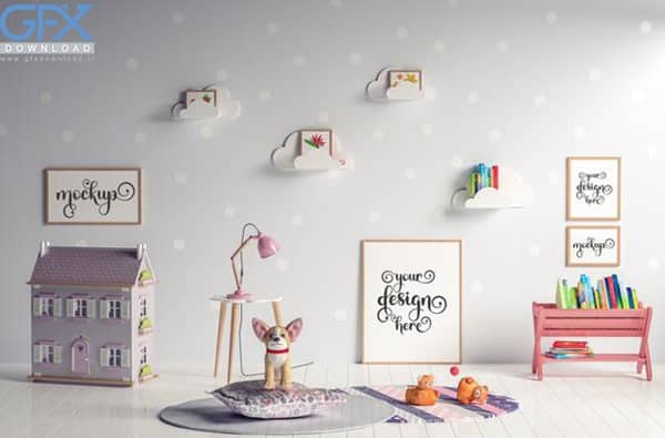 دانلود طرح لایه باز موکاپ و پوستر قاب عکس در اتاق کودک