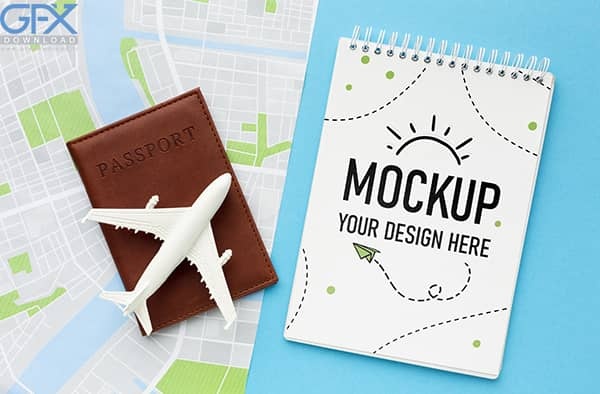 این موکاپ با موضوع سفر و گردشگری می باشد و دارای عناصر گردشگری از جمله نقشه، پاسپورت و هواپیما می باشد. این طرح کاملا رایگان در سایت برای دانلود قرار داده شده است. موکاپ رایگان دفترچه یادداشت با عناصر گردشگری دارای یک دفترچه یادداشت می باشد که می توانید طراحی، لوگو و طرح گرافیکی مورد نظر خود را بر روی آن قرار دهید و پیش نمایش زیبایی ایجاد کنید. فرمت این فایل psd می باشد و می توانید خیلی ساده و راحت از آن در نرم افزار فتوشاپ استفاده و یا نسبت به ویرایش و سفارشی سازی آن اقدام نمود.