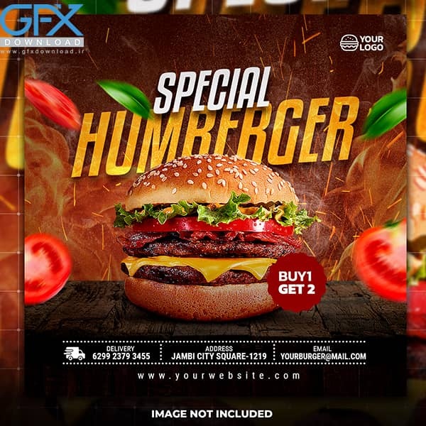دانلود قالب آماده پست اینستاگرام لایه باز تبلیغاتی برگر برای فست فود