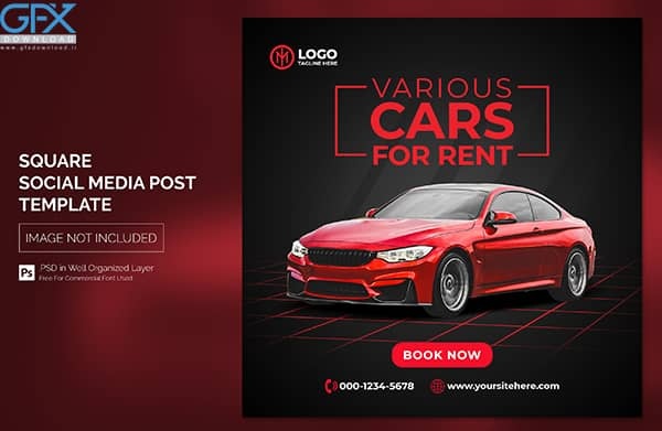 دانلود طرح لایه باز قالب پست اینستاگرام psd تبلیغاتی ماشین